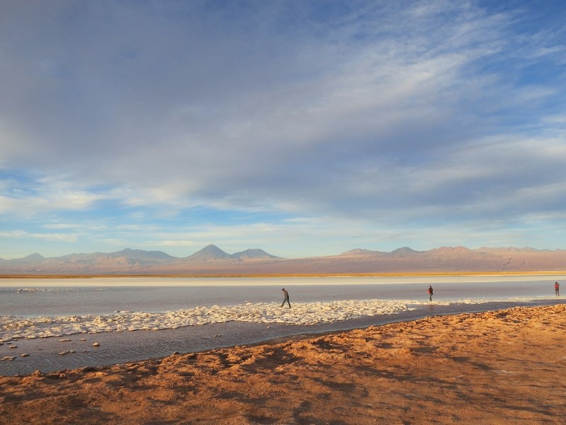 Früh am Morgen brechen Sie mit ihrem Reiseleiter zum Salar de Atacama auf, einem Salzsee von gigantischen Ausmaßen: 3000 km²! An der Oberfläche befindet sich eine dicke Schicht heller Salzkristalle. Hier liegen die weltweit größten Lithium-Lagerstätten, aber auch die Heimat dreier Flamingo-Arten, die sich von den Mikroorganismen der Lagunen ernähren. An der im Salar de Atacama gelegenen «Laguna Chaxa» können Sie die wunderschönen Flamingos und andere Vogelarten in freier Wildbahn beobachten. Danach geht es weiter zum Dörfchen Socaire, das auf 3218 m Höhe liegt und sich durch eine ganz eigentümliche Architektur aus groben Steinen auszeichnet. Hier essen Sie zu Mittag, bevor es ca. 30 km weiter und über 1000 m höher geht, zu den Hochlandlagunen Miscanti und Miñiques mit den gleichnamigen, fast 6000 m hohen Vulkanen im Hintergrund. Die beiden Lagunen leuchten in einem tiefdunklen Blau und sind von weißen Salzrändern umrahmt, gelbes Hochlandgras bildet einen eindrucksvollen Kontrast dazu. Hier ist es vollkommen still, auch die grasenden Vicuñas (eine Lamaart) durchbrechen diese majestätische Stille nicht. Auf der Rückfahrt besichtigen Sie den grünen Dorfplatz des Oasenstädtchens Toconao mit großen Kakteen und einer weißen Kirche mit interessanten Kaktusholz-Konstruktionen. Am späten Nachmittag Rückfahrt nach San Pedro. Übernachtung im ***Hotel La Casa de don Tomas.